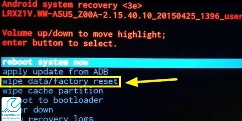 - روی گزینه wipe data/factory rese رفته و با دکمه Home آن را انتخاب کنید.